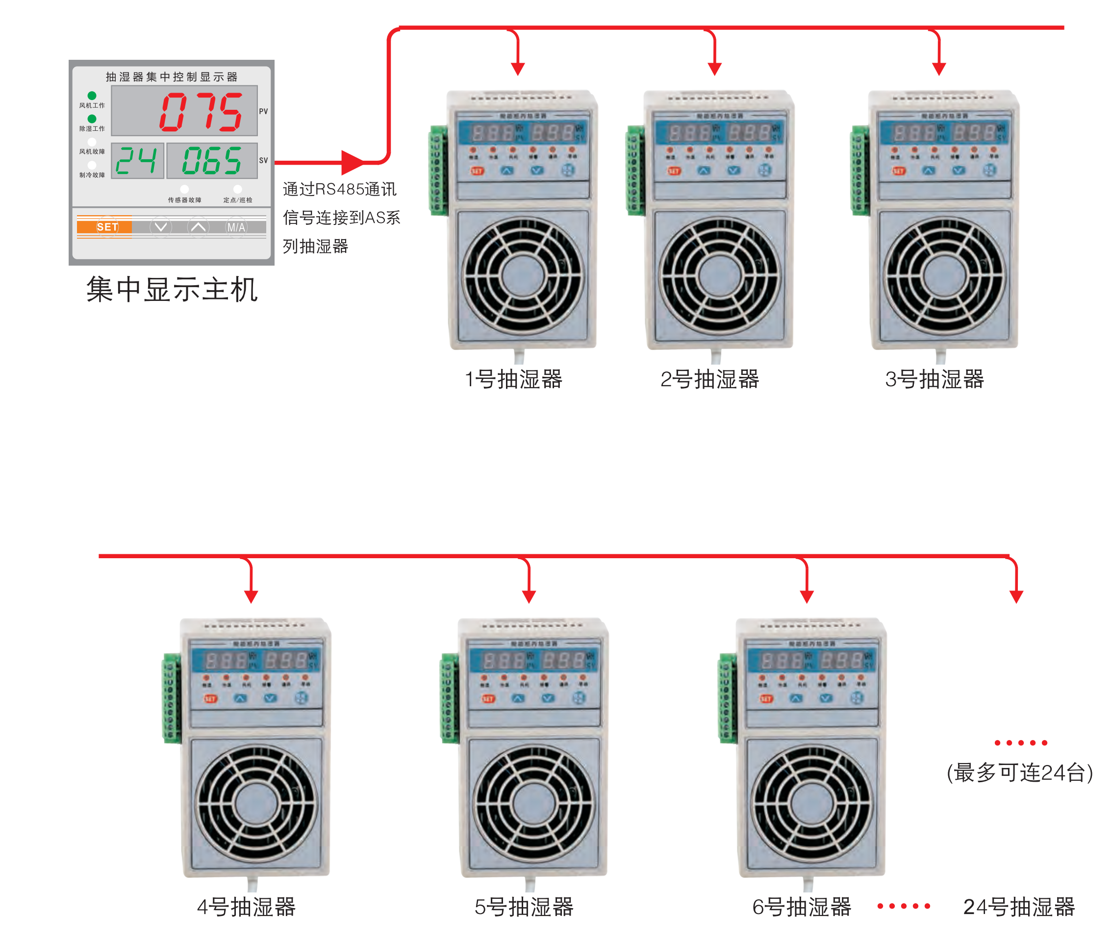 2、自動(dòng)除濕功能:當(dāng)除濕器通過(guò)配套高精度濕度傳感器測(cè)量到濕度大于設(shè)